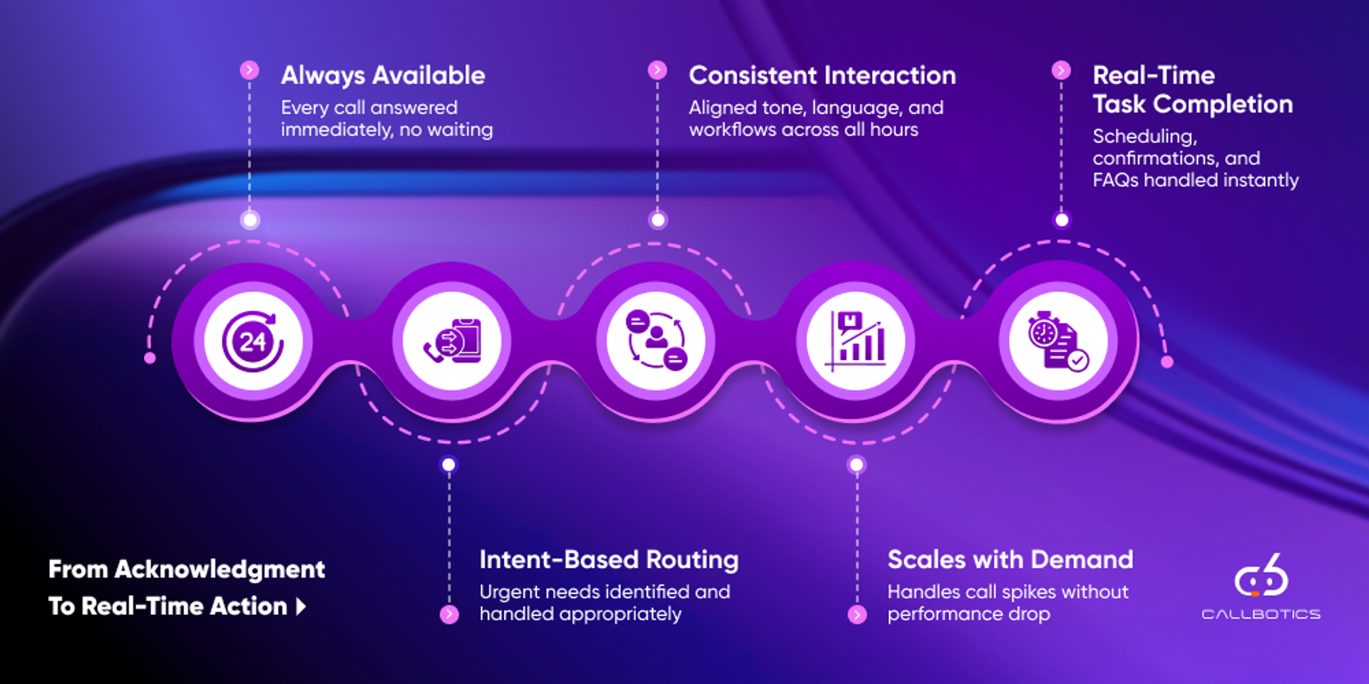 CallBotics is designed to resolve structured conversations end-to-end rather than stopping at routing or acknowledgment.