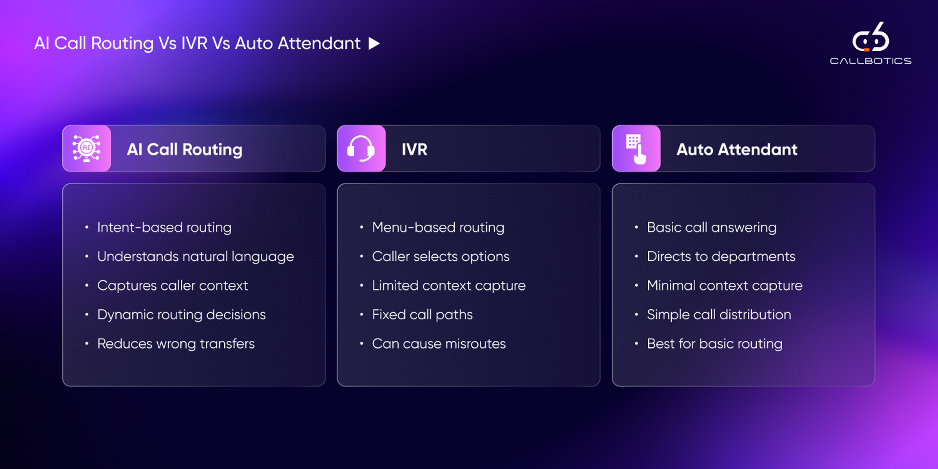 Better routing requires more than just intent detection. It requires a platform that can capture context, support clean handoffs, integrate with business systems, and improve over time using real call outcomes. CallBotics is designed for exactly that kind of operational routing environment. Developed by teams with over 17 years of contact center experience, the platform helps businesses route calls more intelligently while reducing customer effort and transfer friction.