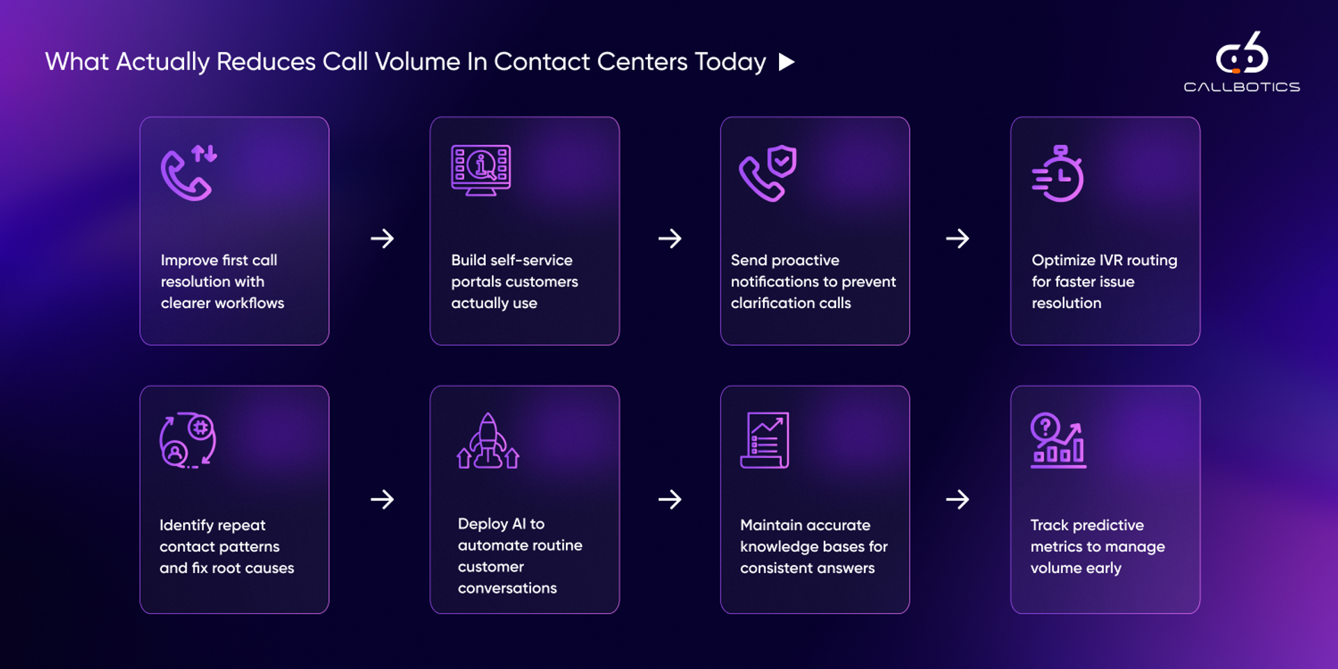 Organizations that redesign processes before expanding capacity create sustainable operational advantages. By applying the eight strategies outlined here and enabling them with modern AI capabilities like those provided by CallBotics, enterprises create stronger service ecosystems and more resilient customer journeys.