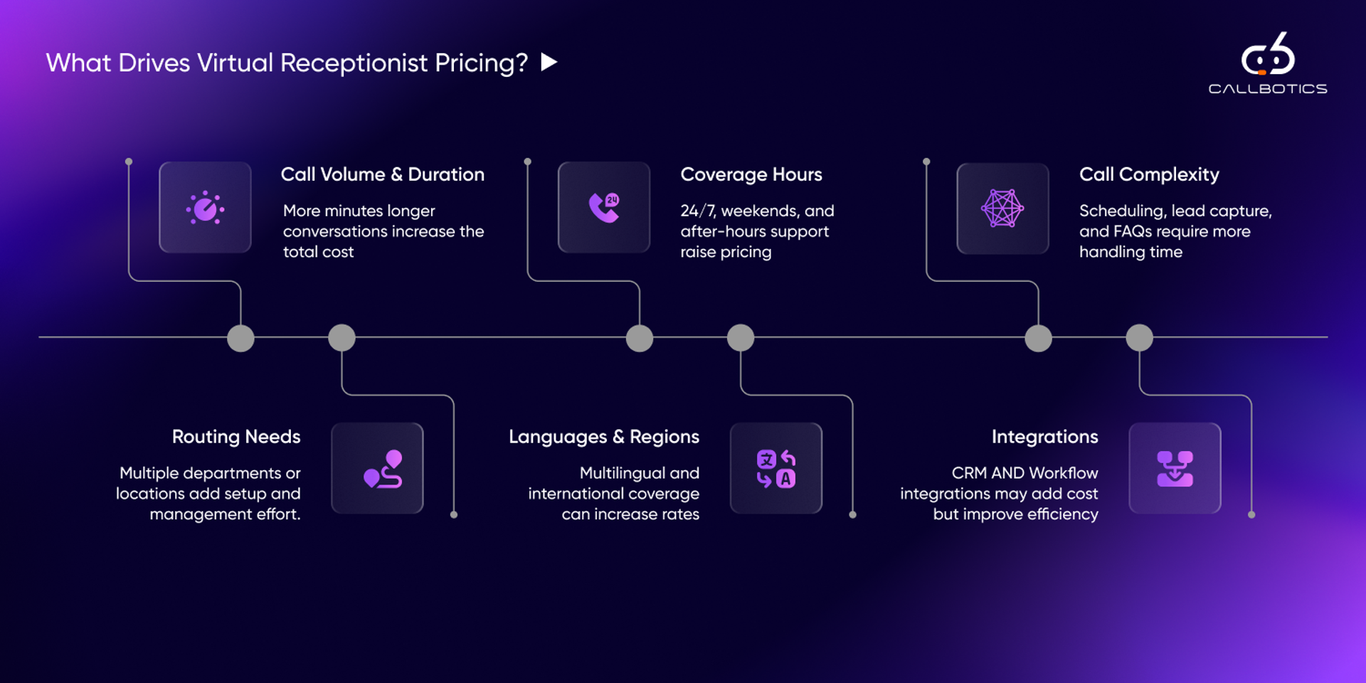 More complex workflows increase handling time and may require higher service tiers or specialized capabilities. However, advanced AI solutions such as CallBotics can resolve around 80 percent of calls end-to-end using deep, production-grade workflows, reducing the need for human intervention while keeping costs predictable.