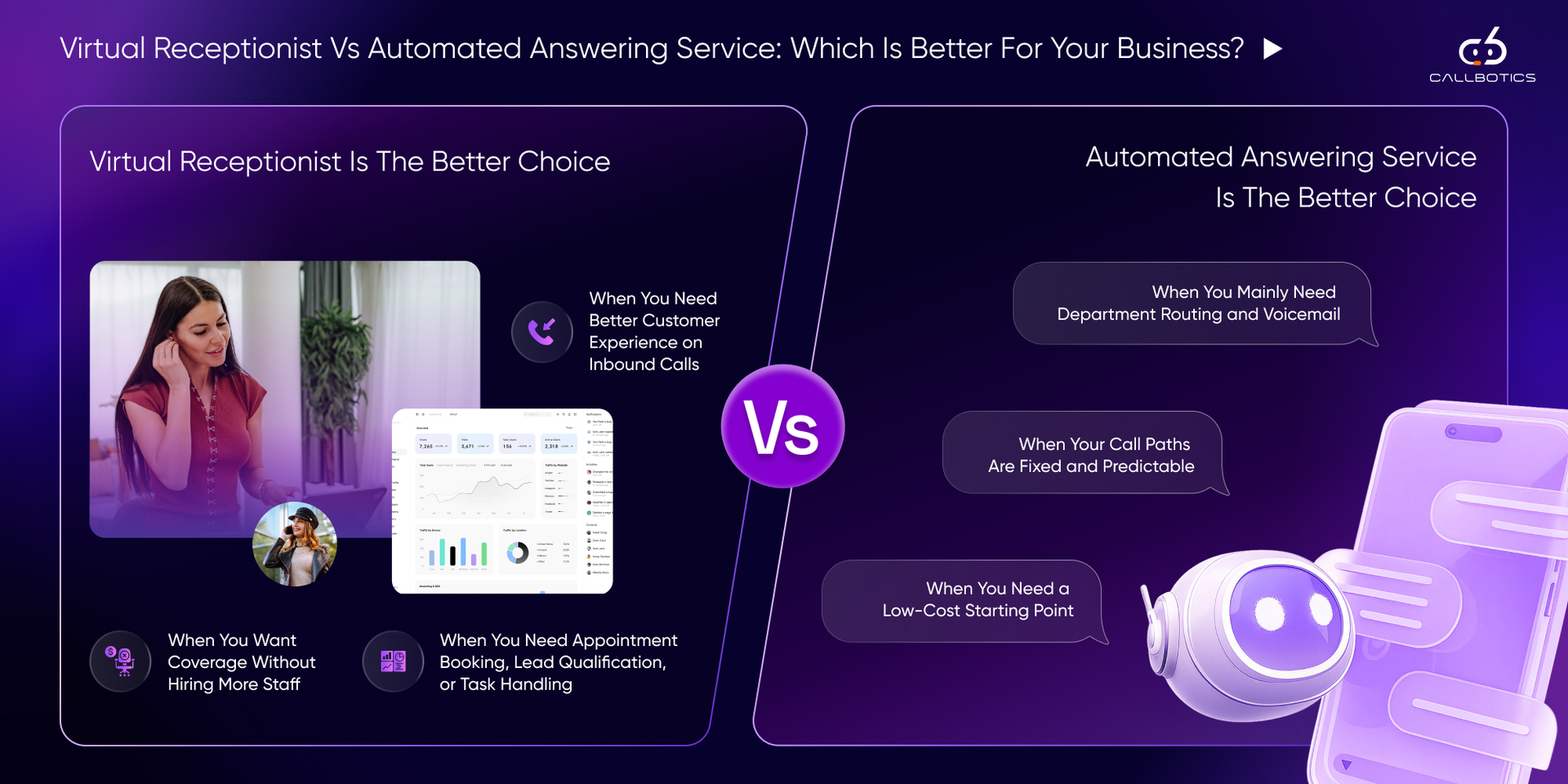 Two common approaches dominate this space: virtual receptionists and automated answering services.